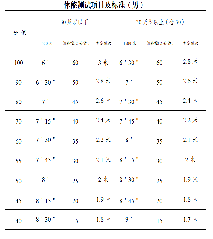 (三)體能考核參照國家綜合性消防救援隊伍消防員招錄體能標準公開、公正測試選拔,參加體能考核人員全部參加心理測試。